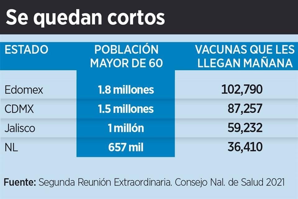 Gobiernos estatales reclamaron ayer el incumplimiento de la promesa de la Administración federal de entregar suficientes vacunas para adultos mayores y concluir la vacunación de personal de salud.