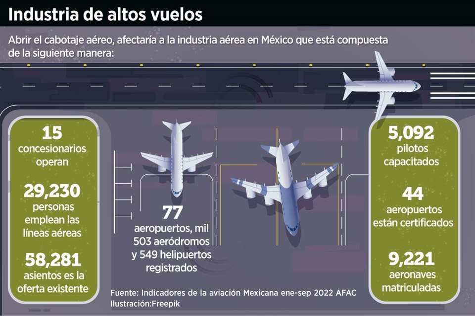 La posibilidad de que aerolíneas extranjeras operen vuelos entre destinos nacionales, para impulsar al Aeropuerto Internacional Felipe Ángeles (AIFA), provocaría la desaparición de aerolíneas nacionales, coincidieron especialistas.