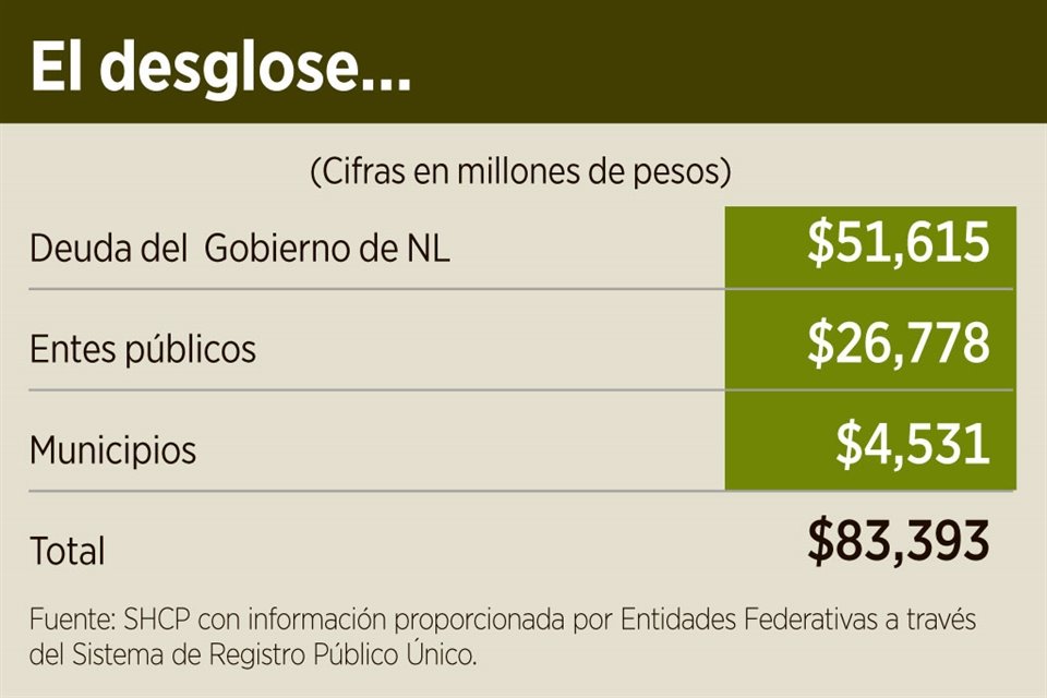 Luego de que ayer EL NORTE publicó que Nuevo León lidera la deuda entre las entidades federativa con comicios este año, funcionarios del Gobierno estatal aclararon que parte de esta deuda corresponde también a municipios, entes y organismos sin control directo.