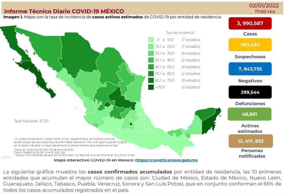 Acumula México 299 mil 544 muertes por Covid-19
