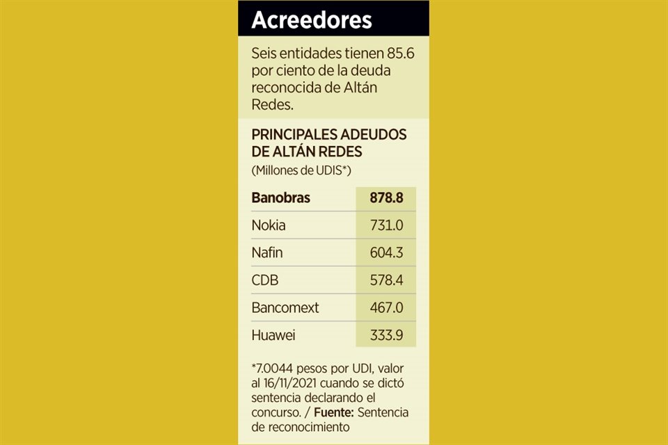 Una jueza federal estableció ayer que Altán Redes, desarrolladora de la Red Compartida, tiene deudas totales reconocidas por 4 mil 192 millones de UDIS, casi 30 mil millones de pesos.