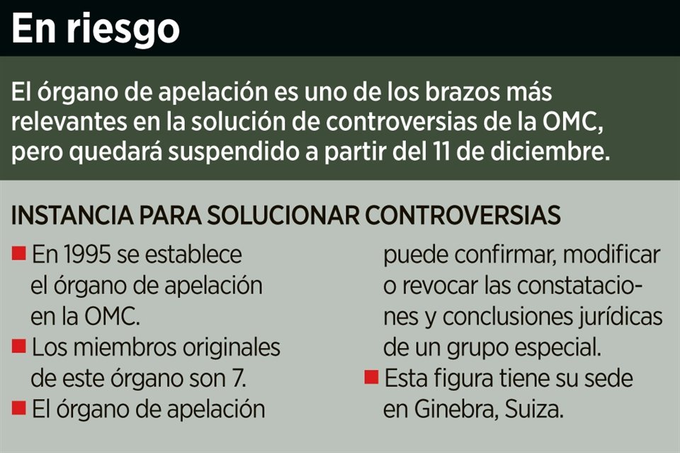 La Organización Mundial de Comercio (OMC) está en riesgo de frenar las sentencias que se acuerden para ser aplicables a algún país.