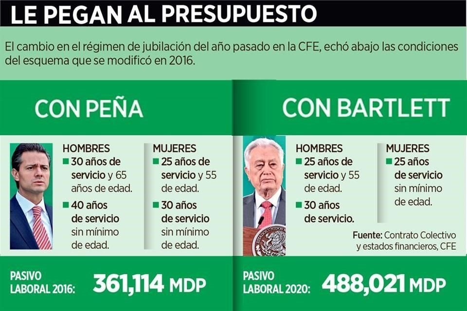 Al modificar el régimen de jubilación de la Comisión Federal de Electricidad (CFE), su director Manuel Bartlett, presionó las finanzas de la empresa.