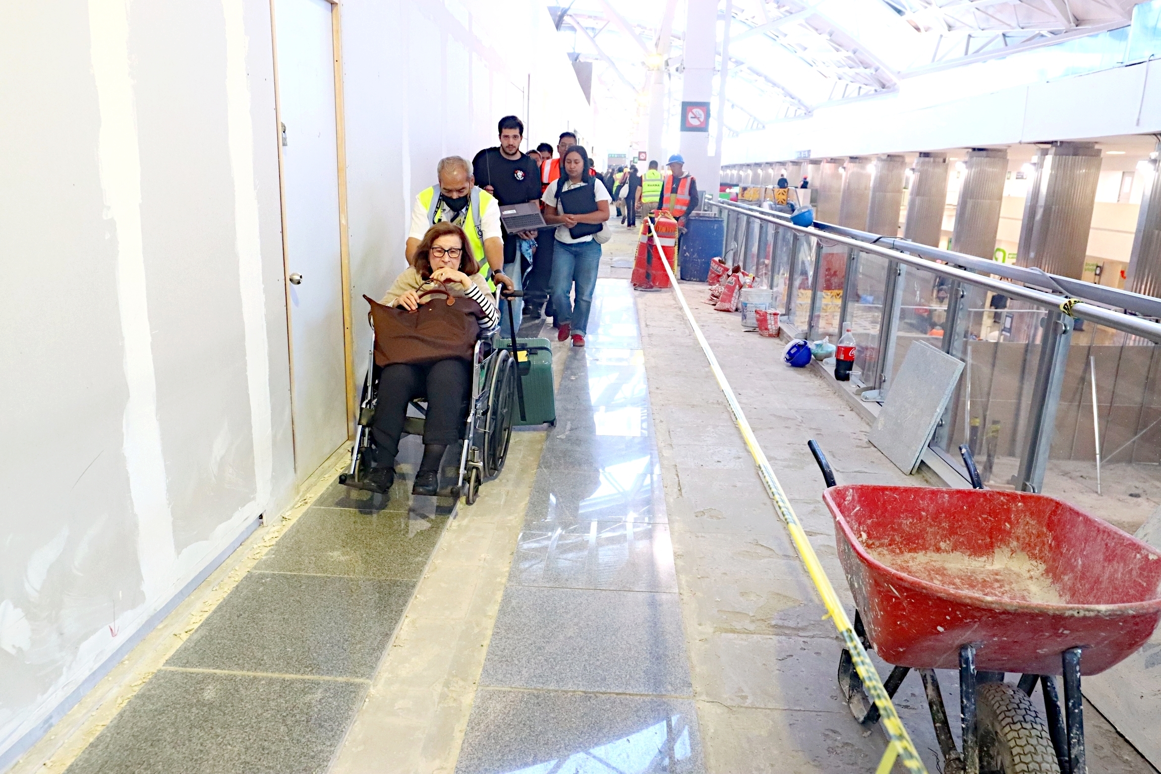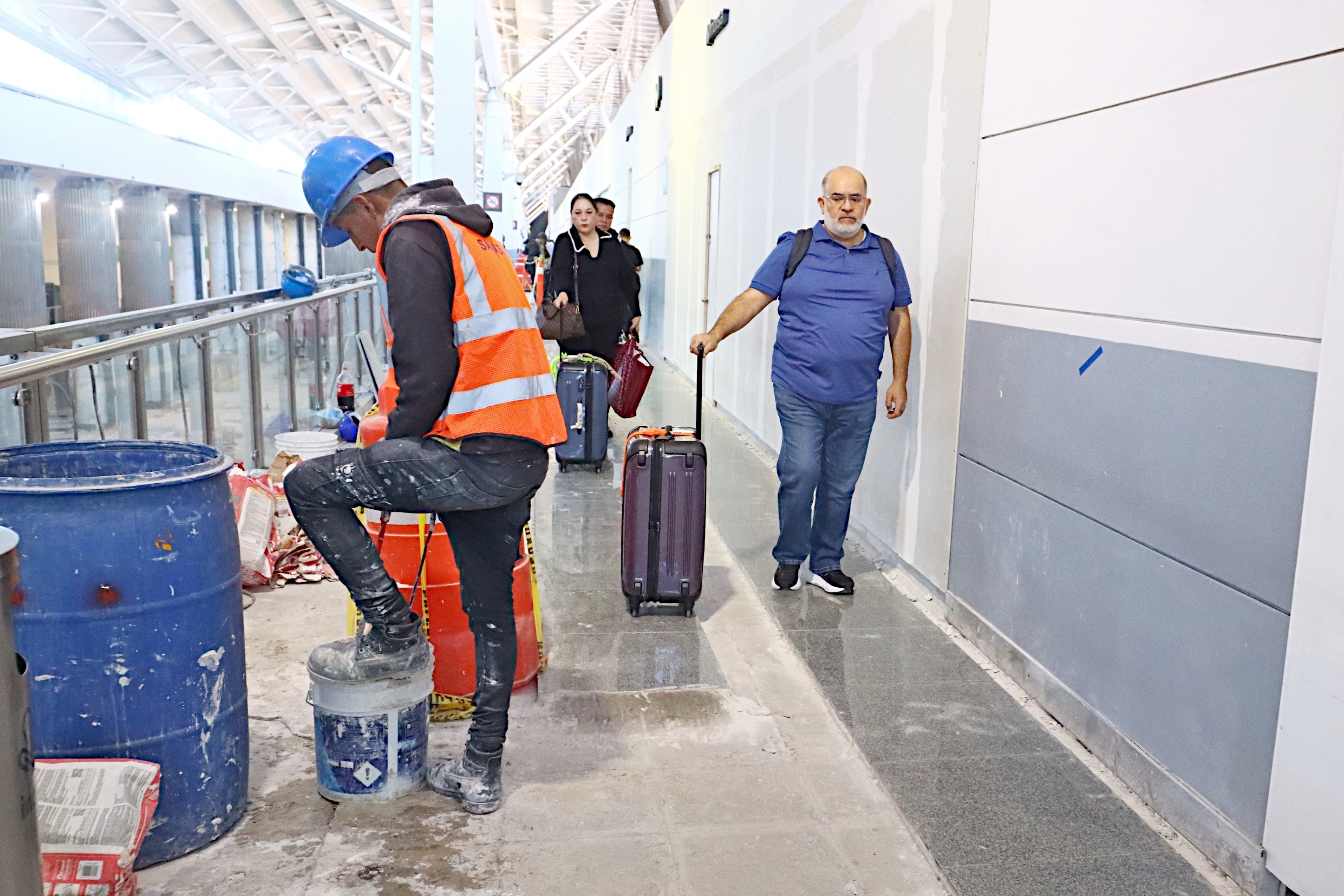 "En Terminal 1, las puertas 1 y 2 están cerradas desde septiembre, restringiendo los accesos de manera permanente y obligando a los usuarios a ingresar por las puertas 4 a la 10. En el interior, los pasajeros sortean pasillos reducidos, tapiales, columnas peladas, desvíos improvisados y salas de abordaje que cambian de ubicación de un día para otro.