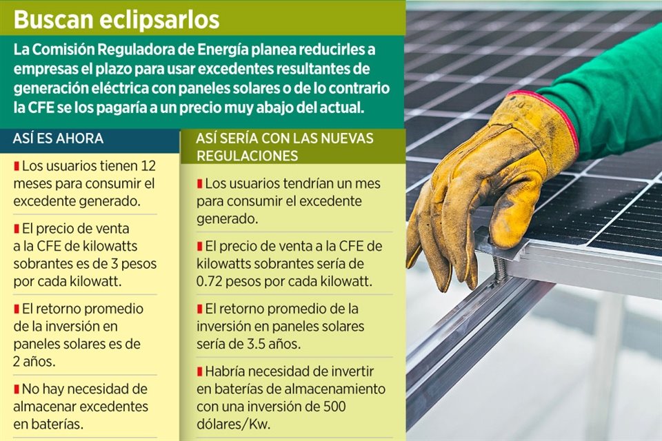 El Gobierno federal "castigará" a las pequeñas empresas que generan electricidad con paneles solares para su autoconsumo y que inyecten sus excedentes a la red de la Comisión Federal de Electricidad (CFE).