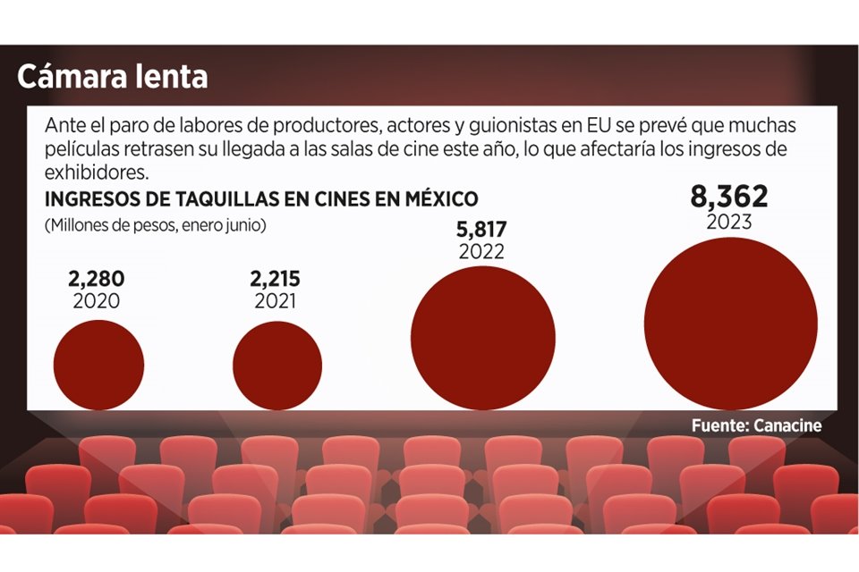 La huelga de guionistas, actores y productores en Estados Unidos afectaría los ingresos y proyectos en cartelera del sector de exhibición en México, advirtió la Cámara Nacional de la Industria Cinematográfica (Canacine).