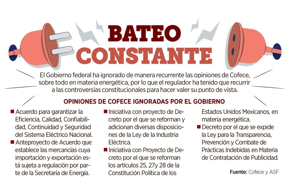 La Comisión Federal de Competencia Económica (Cofece) considera una amenaza que el Ejecutivo no incorpore sus recomendaciones en la emisión de leyes y regulaciones sectoriales, como ha ocurrido en el ámbito energético.