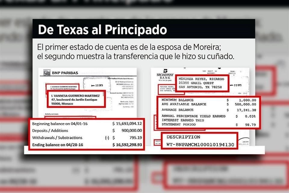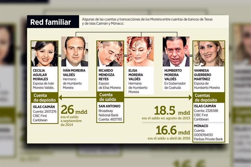 La esposa y la cuñada del ex Gobernador de Coahuila Humberto Moreira Valdés manejaron recursos hasta por 62.1 millones de dólares en cuentas bancarias en Mónaco y en las Islas Caimán, entre 2013 y 2016.