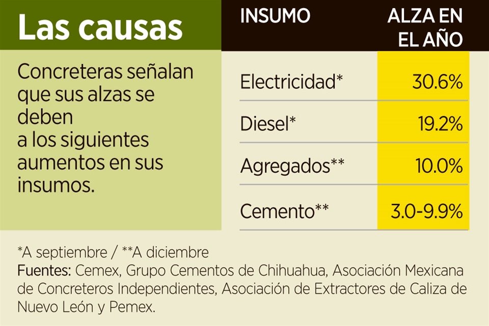 A partir del 1 de enero, el precio del concreto subirá 20 por ciento a nivel nacional, lo que agravará el costo de obra en el País, que en noviembre alcanzó un nivel récord en encarecimiento.