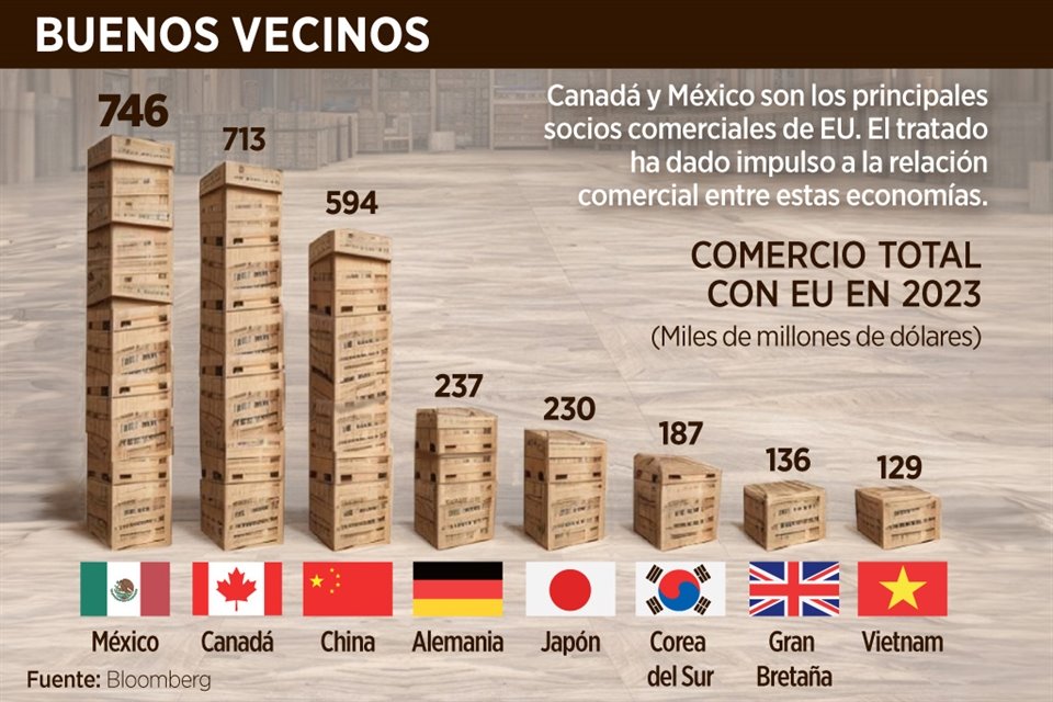 A 4 años del arranque del T-MEC, México ya ve reflejados los beneficios al convertirse en uno de los principales socios comerciales de EU. Crédito: AP