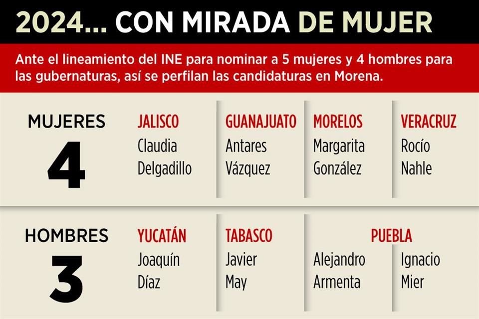 Morena enfrenta una pugna interna por definir y garantizar a cinco mujeres como sus candidatas a la Gubernatura en 2024.