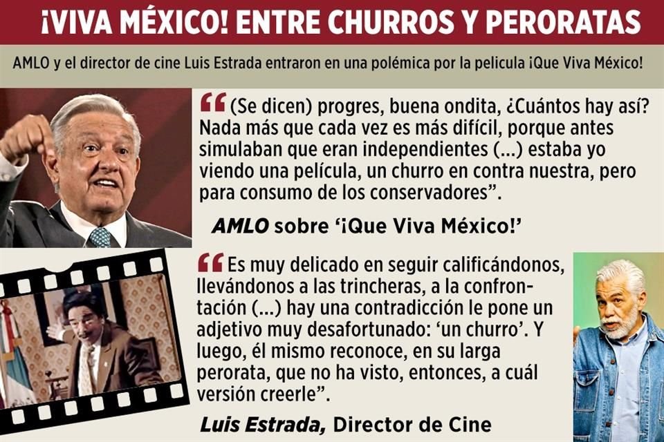 El Presidente Andrés Manuel López Obrador arremetió en contra del director Luis Estrada y su nueva película ¡Que Viva México!, cinta que calificó de "churro" y que, aseguró, es para consumo de los "conservadores".