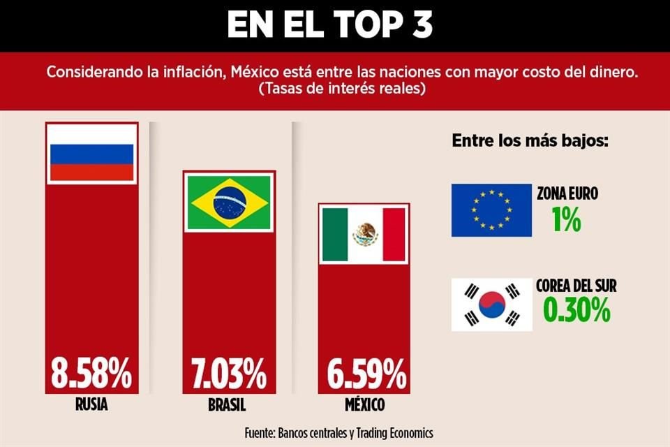 A pesar de que la Junta de Gobierno del Banco de México (Banxico) dejó sin cambio la tasa de referencia desde mayo de 2023, ésta se ubica en un máximo histórico y es una de las más elevadas entre las economías del Grupo de los 20 (G-20), lo que afecta al financiamiento de las empresas, advierten especialistas.
