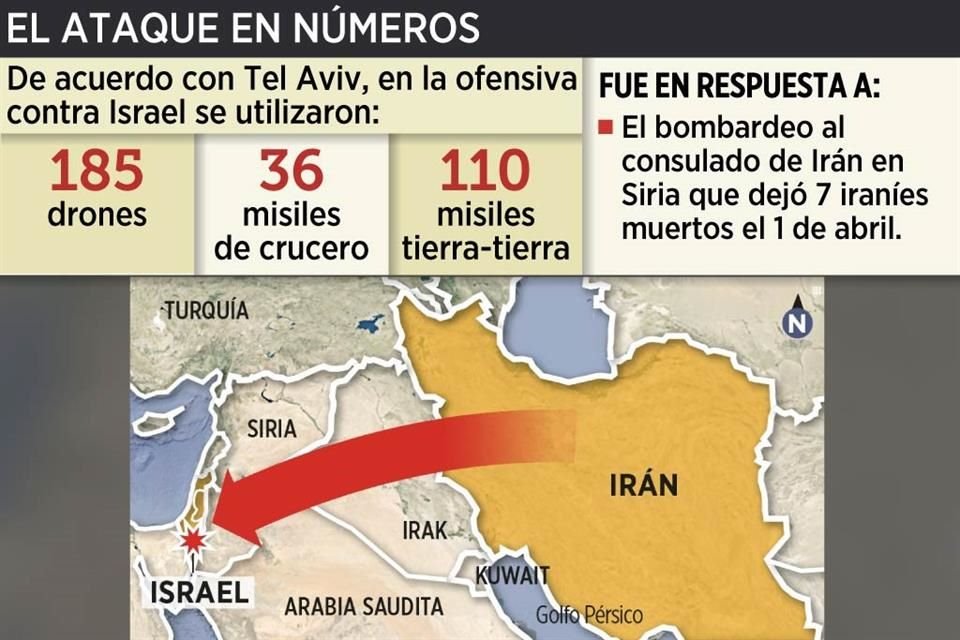 Irán lanzó más de 200 drones y misiles a Israel en represalia por un bombardeo a su consulado en Siria que mató a mandos del país islámico. Crédito: Agencias.