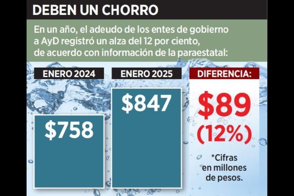 Aunque Agua y Drenaje de Monterrey (AyD) presiona a los usuarios domésticos y comerciales con cortes o reducción en el servicio si acumulan meses de adeudos, los entes gubernamentales acarrean pasivos de hasta 224 meses, y que en conjunto suman 847.5 millones de pesos.