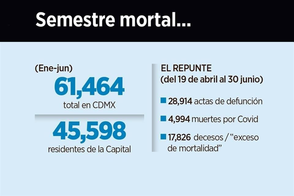 Una comisión científica y autónoma encontró que durante la pandemia de Covid-19, la Ciudad de México registró un exceso de mortalidad de 161 por ciento hasta junio de este año.