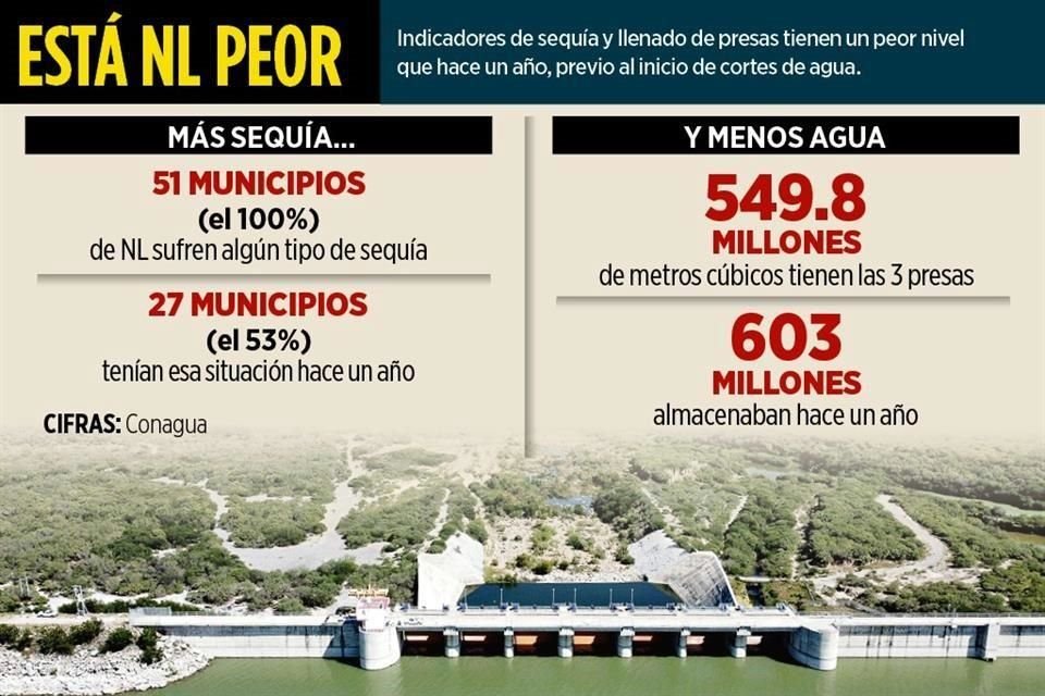 La sequía está ganando terreno en Nuevo León, mientras las presas mantienen su caída.