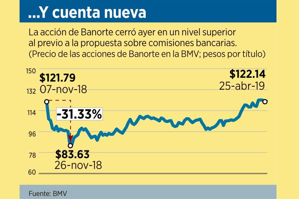 Tras casi seis meses desde la caída provocada por la propuesta de legisladores de Morena de eliminar algunas comisiones bancarias, presentada el 8 de noviembre, las acciones de Grupo Financiero Banorte han borrado las pérdidas sufridas de hasta 31.3 por ciento.