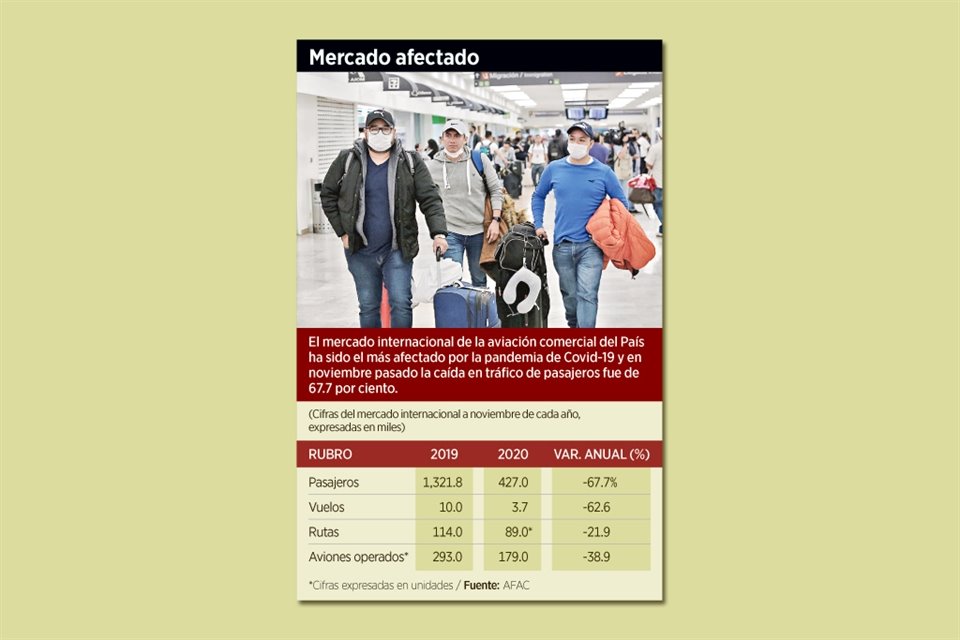 Al cierre de noviembre pasado, aerolíneas mexicanas dejaron de operar 54 rutas aéreas nacionales e internacionales ante la caída en la demanda y oferta de viajes por avión por la pandemia.