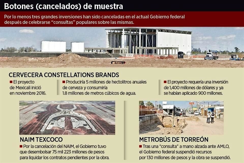 El resultado de la "consulta" impulsada por el Presidente Andrés Manuel López Obrador que canceló la planta en Mexicali de mil 400 millones de dólares de la cervecera Constellation Brands es un gran revés a la confianza de los inversionistas y fue considerada como arbitraria por el sector empresarial.