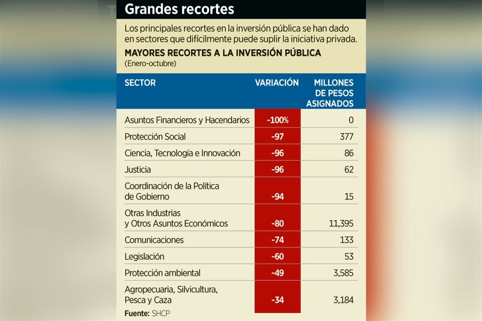 De enero a octubre, la inversión pública en infraestructura, que potencializa el crecimiento económico, presenta una caída de 13 por ciento frente al mismo periodo de 2018, según datos de la Secretaría de Hacienda.