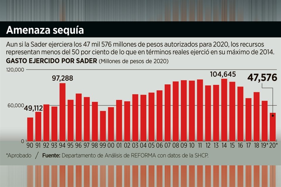 Para el próximo año, el presupuesto de la Secretaría de Agricultura y Desarrollo Rural (Sader) será el menor ejercido en casi 30 años.