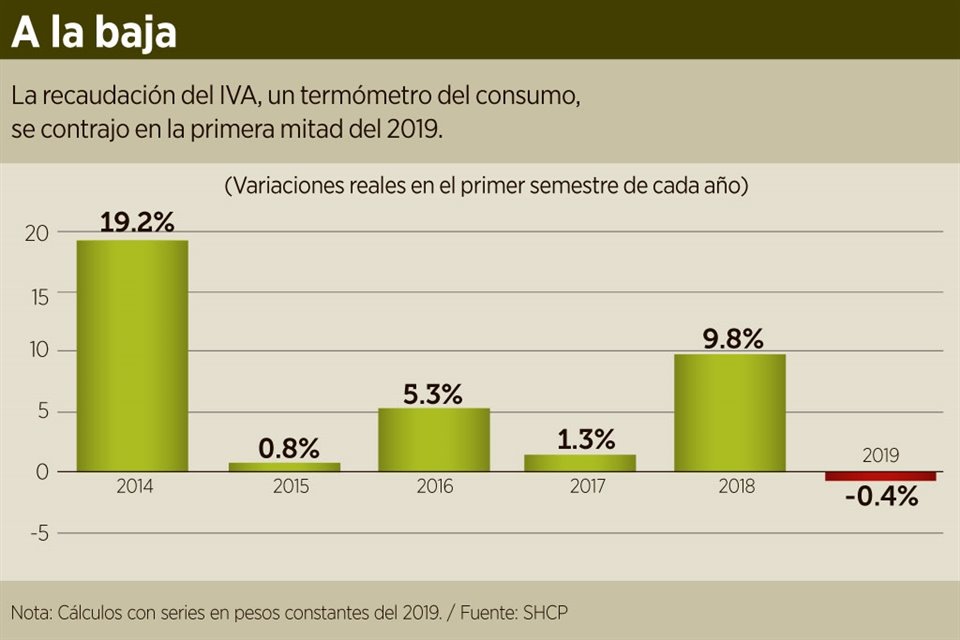 La desaceleración económica del País impactó en una menor recaudación de IVA en el primer semestre del año, reportó la Secretaría de Hacienda.