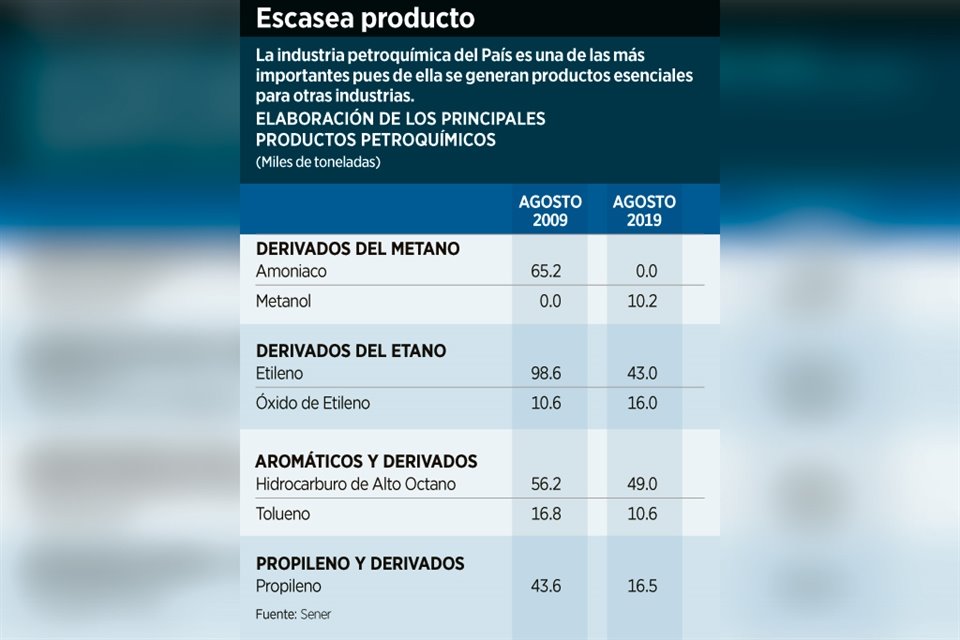En los últimos 10 años, la producción de la industria petroquímica del País ha caído 55.8 por ciento.