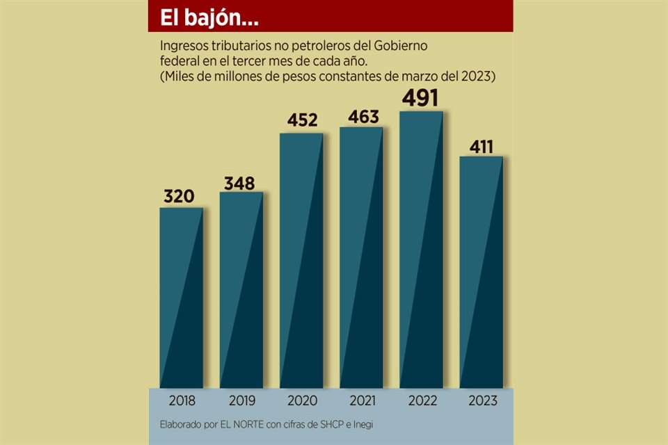 En marzo pasado, los ingresos tributarios no petroleros del Gobierno federal se desplomaron 16.2 por ciento a tasa anual en términos reales, a 411.3 mil millones de pesos, reportó la Secretaría de Hacienda.