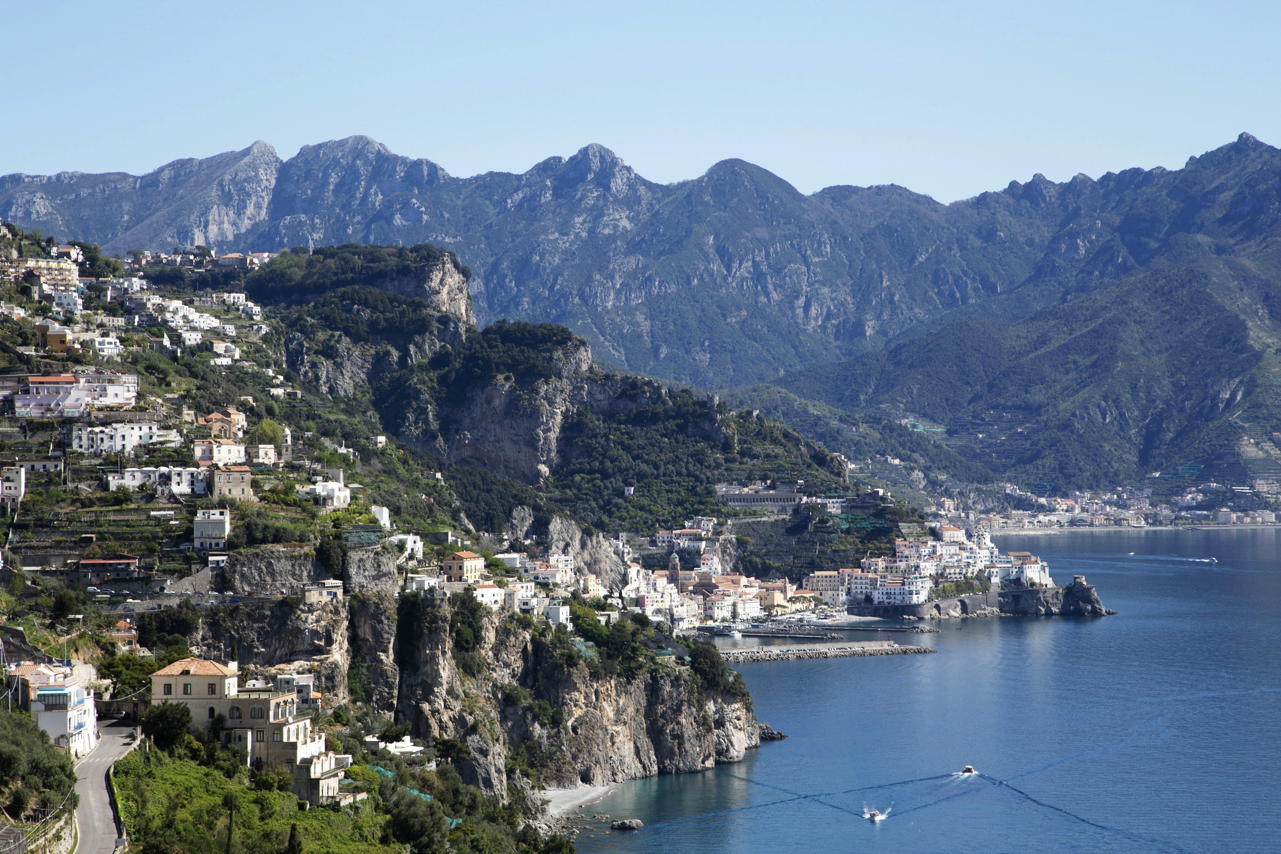 En el trayecto que va de Sorrento a Positano se observan casas en cascada, boutiques de lino y terrazas con vista al mar.