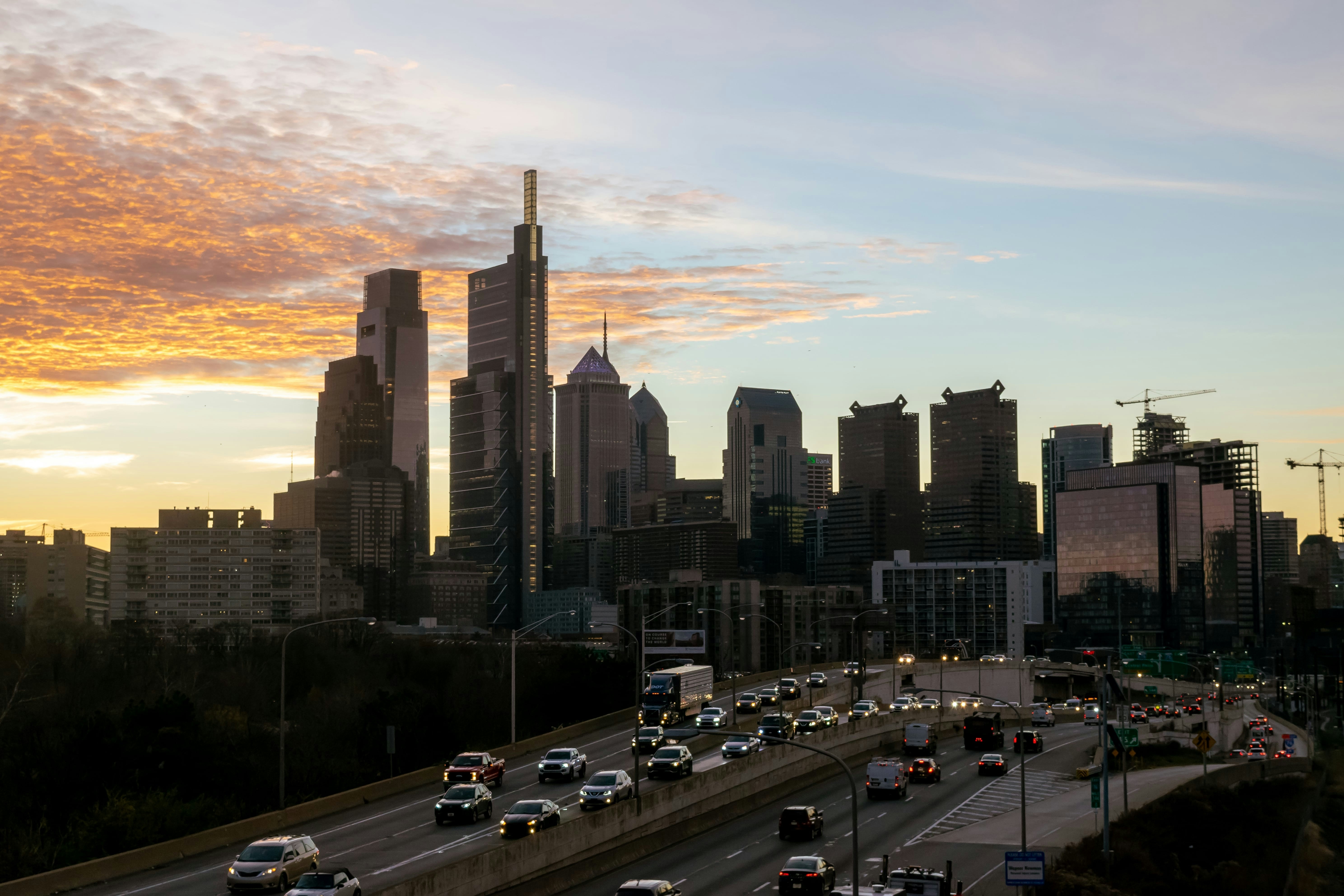 Las autopistas I-95 y I-76 facilitan traslados hacia la costa este y el interior del país, mientras que NJ Transit y PATCO Line enlazan con Nueva Jersey.