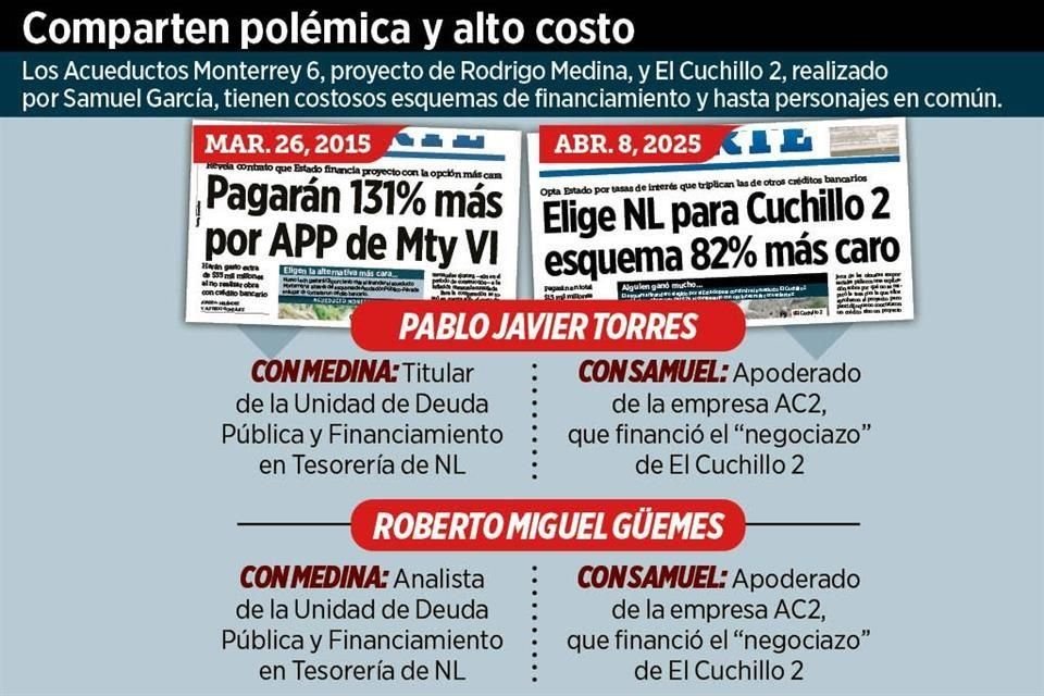 Dos de los apoderados de la empresa que se encargó del costoso financiamiento para el Acueducto El Cuchillo 2 trabajaron con el ex Gobernador Rodrigo Medina, en cuya gestión también se intentó poner en marcha el proyecto Monterrey 6 con un esquema de deuda fuera de las condiciones de mercado.
