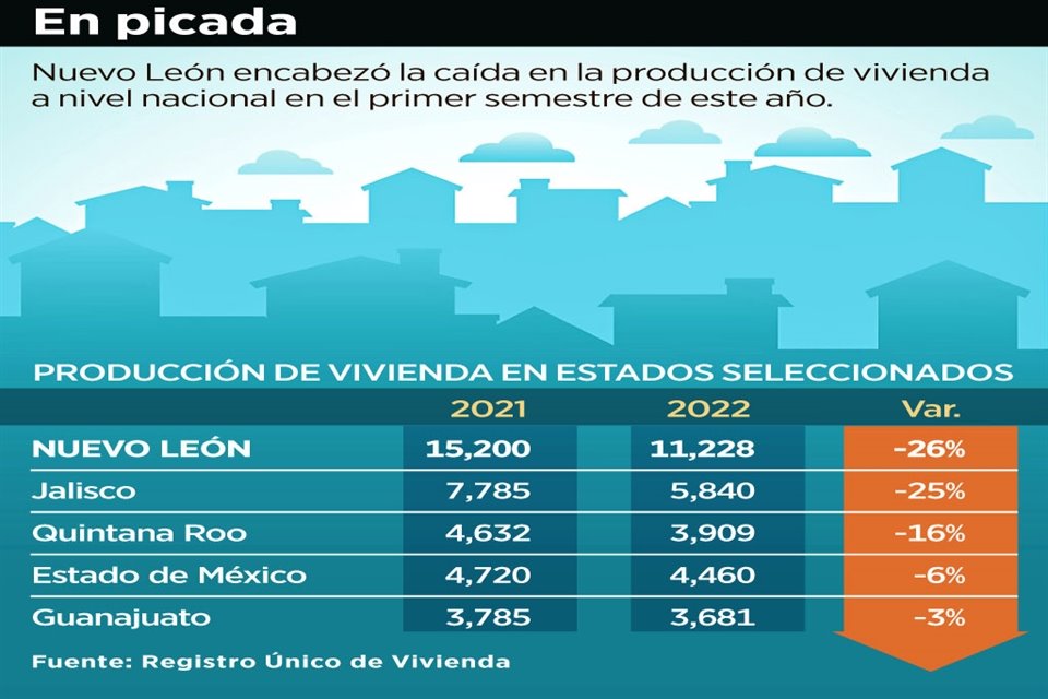 La producción de casas en Nuevo León, el principal referente en este rubro en México, cerró el primer semestre de este año con una caída de 26 por ciento respecto al mismo periodo del 2021, revelan cifras del Registro Único de Vivienda (RUV) recién divulgadas.