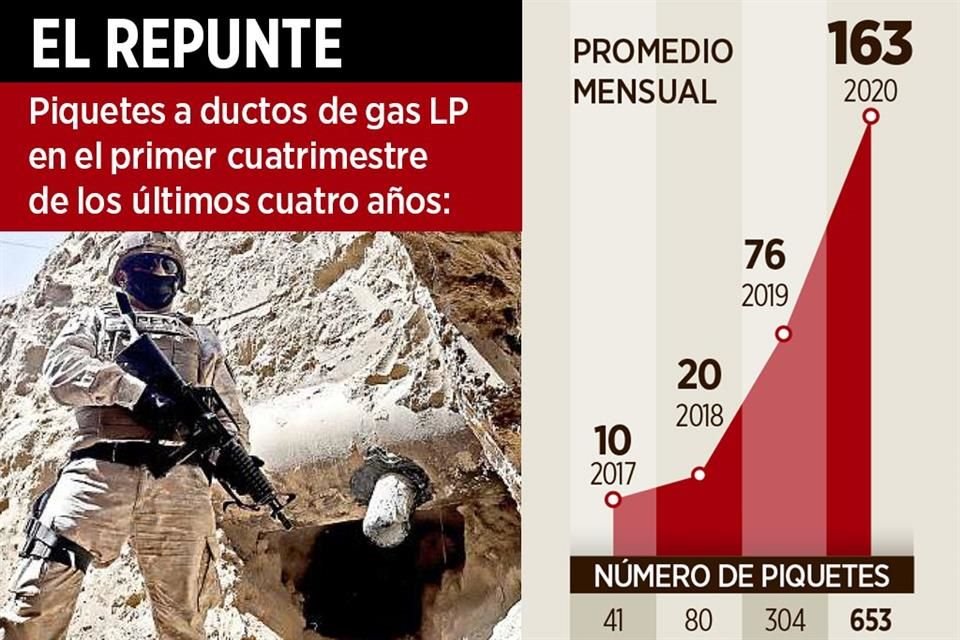 La ordeña de gasolinas disminuyó, pero los huachicoleros ahora extraen gas.