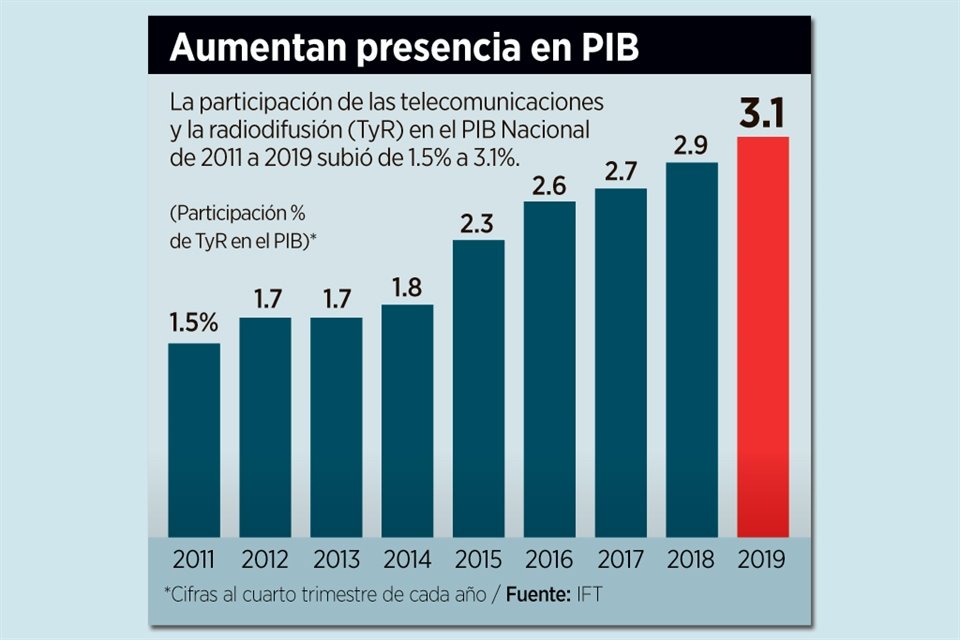 De 2018 a 2019, la inversión total en infraestructura de telecomunicaciones, considerando activos no tangibles, ascendió a 97 mil 632 millones de pesos, 26.2 por ciento más.