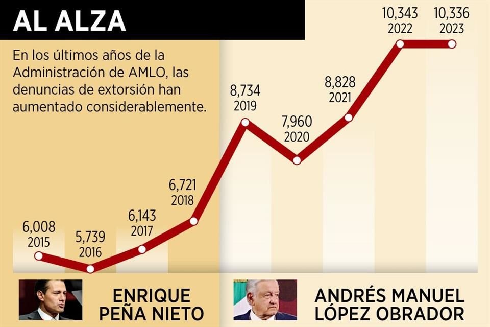 En los últimos 4 años del actual sexenio, la extorsión aumentó un 50% con respecto al mismo periodo en el Gobierno de EPN, según SESNSP. Crédito: Grupo REFORMA.