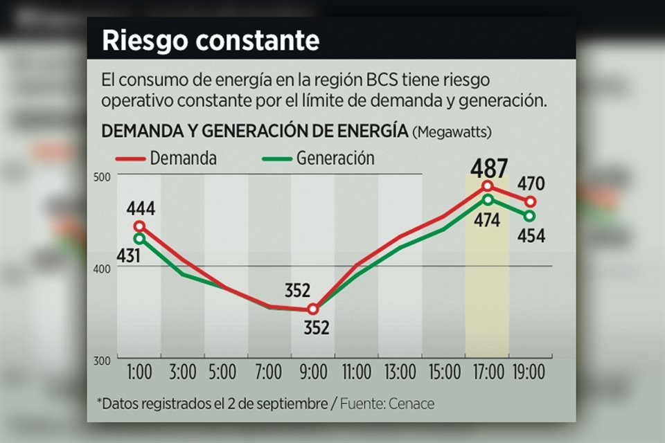 La demanda nacional máxima instantánea de electricidad en la región de Baja California Sur creció 6.9 por ciento en lo que va del año.