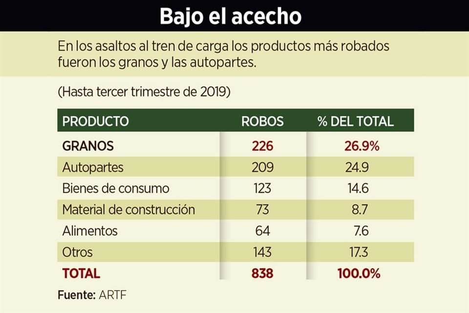 Durante 2019, el robo a trenes se desplazó hacia el norte del País y el objetivo principal fueron los granos.