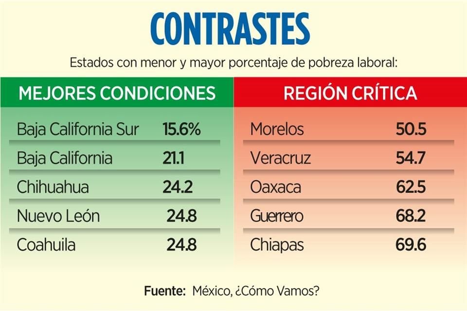 En el tercer trimestre de este año, 19 estados del País reportaron un mayor porcentaje de personas en pobreza laboral, es decir, que no pueden adquirir la canasta básica con los ingresos laborales de su hogar.