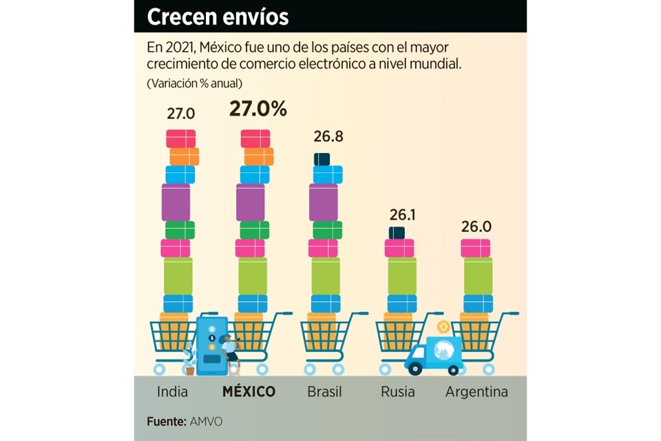 El año pasado, México junto con India lideró en crecimiento del comercio electrónico a nivel mundial, según la Asociación Mexicana de Venta Online (AMVO).