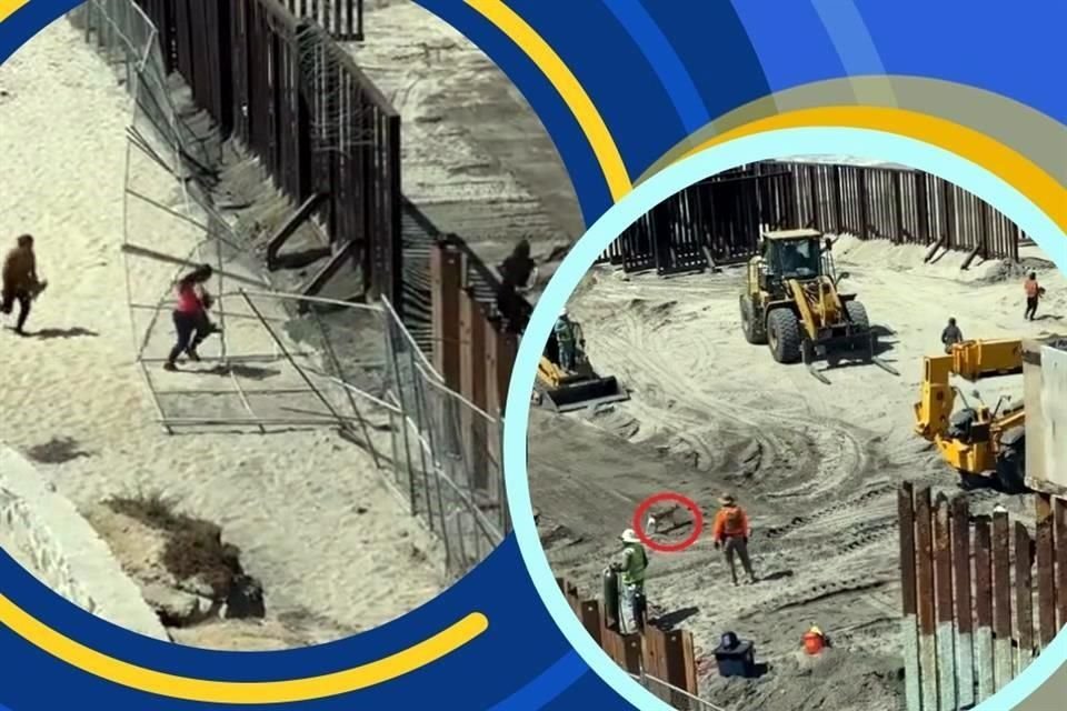 Decenas de migrantes aprovecharon la remodelación de una parte del muro en playas de Tijuana, Baja California, y cruzaron corriendo al lado estadounidense ante la mirada atónita de los empleados de construcción.
