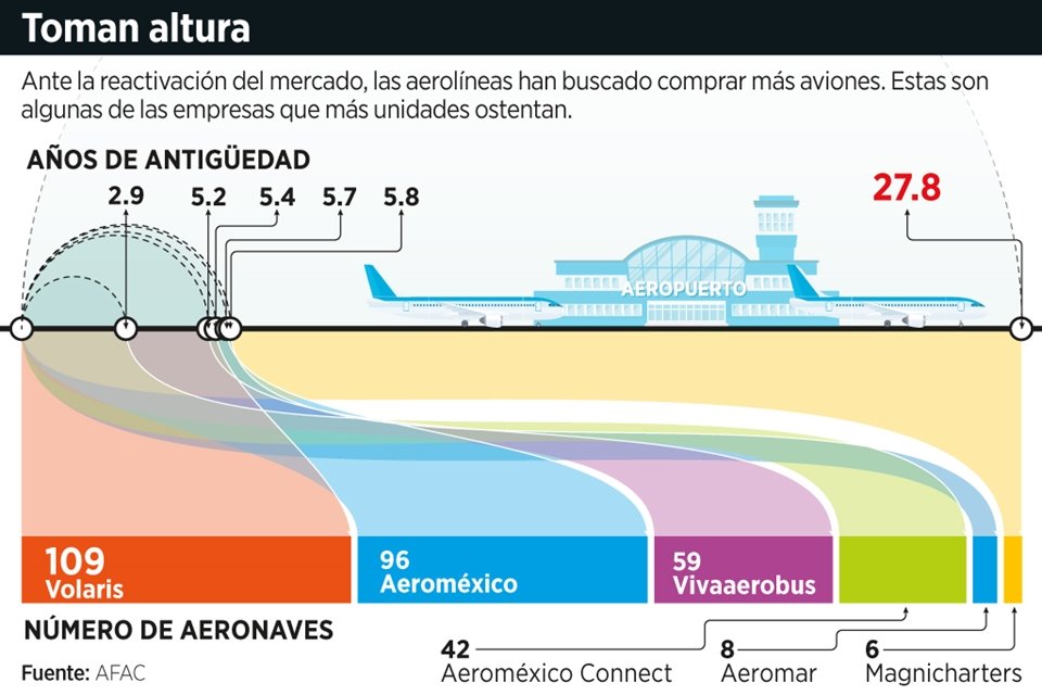Durante el segundo trimestre del año, la flota aérea en México mostró signos de recuperación, al alcanzar un total de 342 unidades, con una edad promedio de ocho años de antigüedad, según la Agencia Federal de Aviación Civil (AFAC).