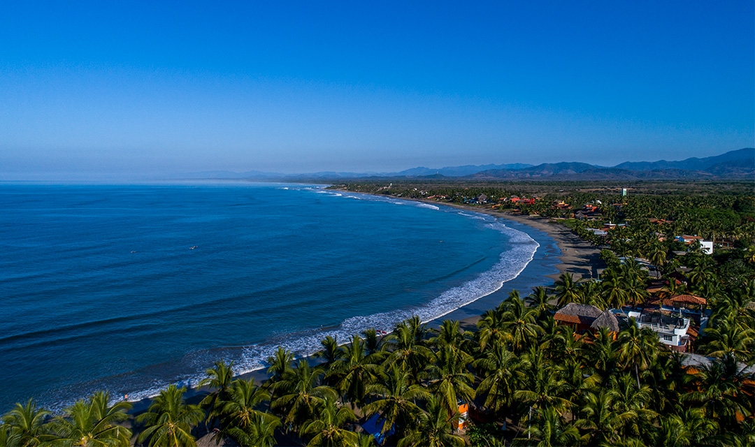 A cinco kilómetros del Pueblo Mágico de Sayulita, San Pancho encarna el espíritu bohemio y tranquilo de la Riviera Nayarit. Su playa de arena dorada y mar apacible acoge atardeceres que tiñen el horizonte, mientras locales y visitantes disfrutan del ritmo sereno que define a este rincón costero.