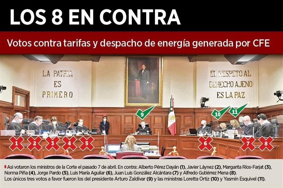 Pese a que en discusión 8 ministros de Corte consideraron inconstitucional la ley eléctrica, Arturo Zaldívar sólo contabilizó el voto de 7. Crédito: Especial