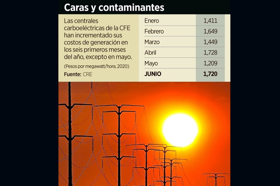Entre enero y junio de este año, el costo de generar energía con carbón se elevó 21.8 por ciento por megawatt/hora, respecto a igual periodo de 2019, y a pesar de ello la Comisión Federal de Electricidad (CFE) busca darle mayor uso.