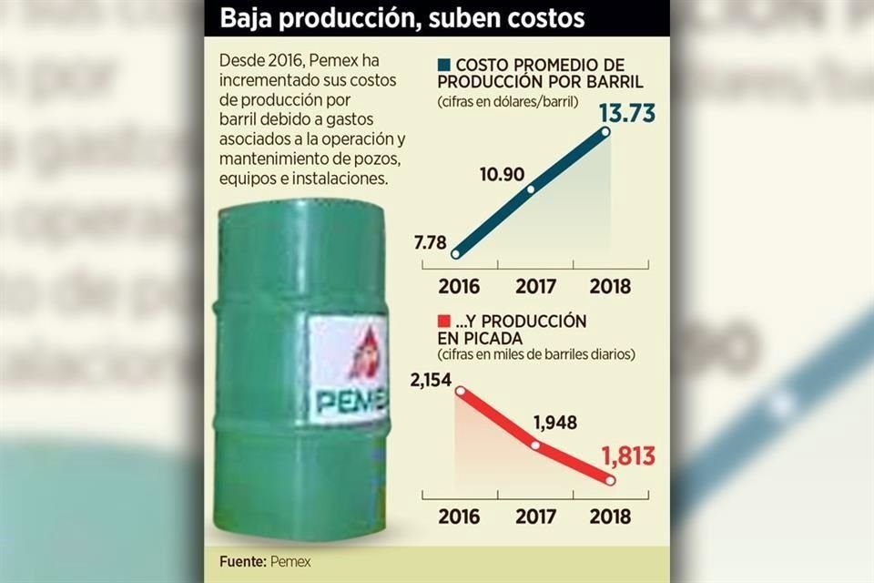 Petróleos Mexicanos (Pemex) no sólo enfrenta problemas de endeudamiento, sino costos crecientes por extraer petróleo.