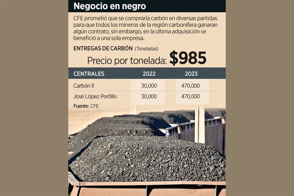 La Comisión Federal de Electricidad (CFE) adjudicó, sin licitación alguna, un millón de toneladas de carbón a la compañía La Sierra Minería y Transporte.