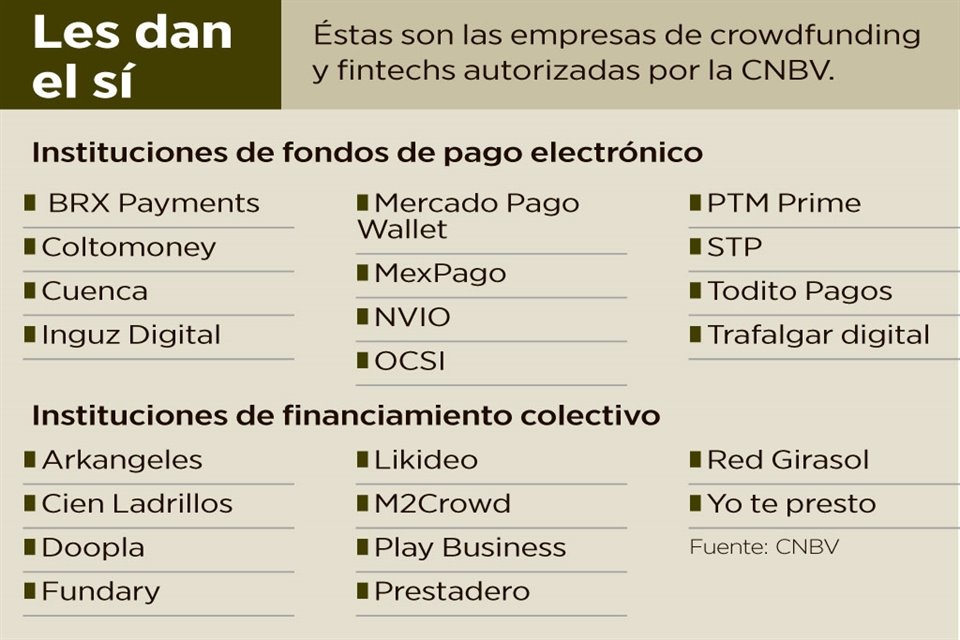 Según la CNBV, en total hay 10 empresas de crowdfunding autorizadas y 12 fintechs de pagos electrónicos. Crédito: Marlen Hernández