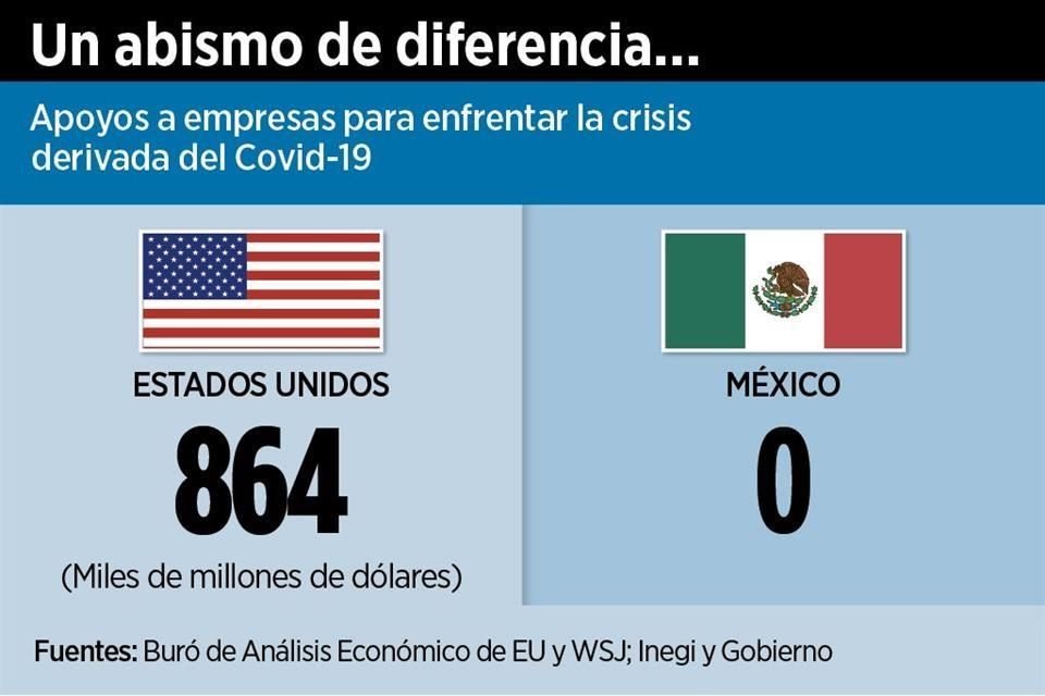 Mientras que en Estados Unidos el Senado aprobó un histórico paquete de ayuda por 2 billones de dólares, de los que 864 mil millones de dólares son para empresas, en México aún no hay una estrategia integral ante el impacto del Covid-19.