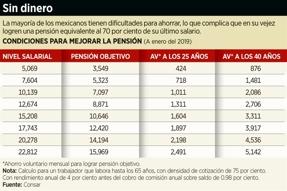 Para obtener una pensión modesta mediante la Afore, se tiene que ahorrar de forma voluntaria durante mucho tiempo y en montos muy elevados para el promedio del ingreso.